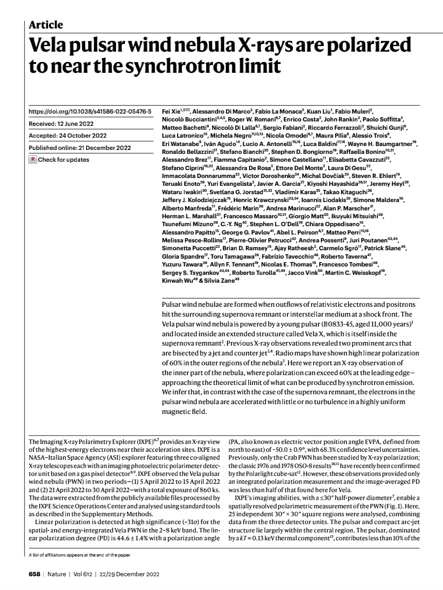 12月22日,廣西大學召開新聞發布會,介紹其天文與空間科學技術團隊取得的深空探索重大觀測成果,該成果《船帆座脈沖星風云X射線偏振趨近同步輻射理論極限》已在國際頂級期刊《自然》雜志發表。該校副教授謝斐是論文的唯一第一作者和通訊作者。