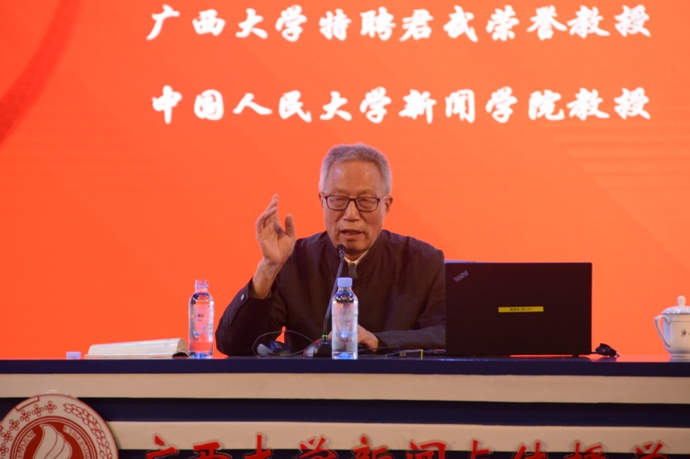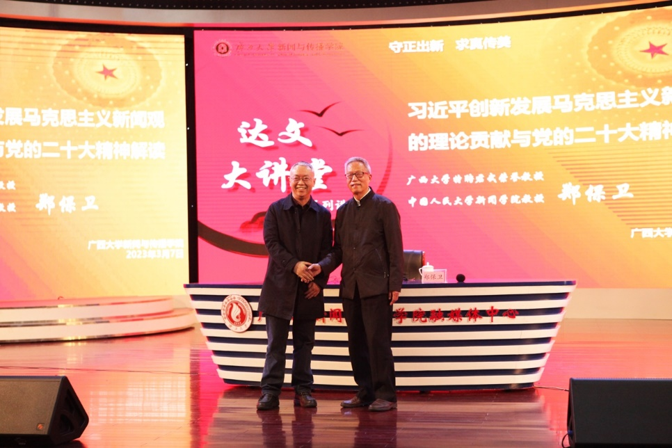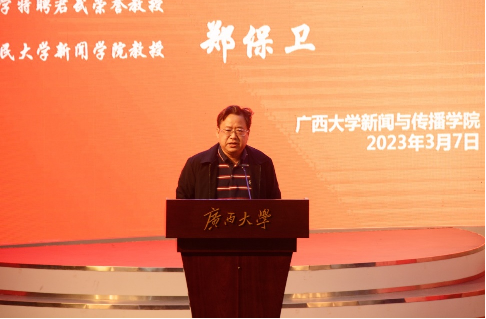 鄭保衛(wèi)教授為廣西大學(xué)學(xué)生作習(xí)近平創(chuàng)新發(fā)展馬克思主義新聞觀的理論貢獻(xiàn)與黨的二十大精神學(xué)習(xí)輔導(dǎo)報告