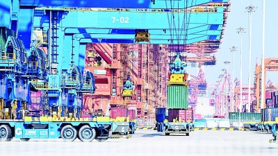 ??欽州港口岸作為西部陸海新通道的出海樞紐節點,智慧口岸建設加速推進。2022年西部陸海新通道沿線省區市經廣西口岸進出口額達4664億多元?!氨辈繛掣蹥J州港使用全球首創‘U’型工藝、全國首個海鐵聯運自動化集裝箱碼頭,極大地提升了運輸效率,降低了運輸成本?!睔J州港海關物流監控科副科長張貴說,自動化集裝箱碼頭的啟用使得港口與海關間的數據交互更加高效,實現了進出口集裝箱貨物海關監管全程可視化,真正讓企業體驗到了“無感”通關。
