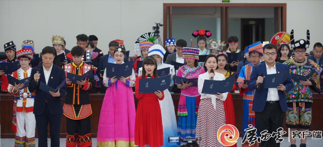 廣西大學相關負責人出席并講話。表示廣西大學將緊緊抓住鑄牢中華民族共同體意識這條主線,不斷深化民族團結進步教育,用黨的創新理論指導民族團結進步工作,把民族團結教育融入教書育人全過程,引導師生爭當新時代民族團結的踐行者、促進者、守護者。持續推進中華優秀傳統文化、革命文化、社會主義先進文化進校園,將民族團結進步宣傳教育融入校園文化建設,在潤物無聲中強化育人效果。推進品牌校園民族文化活動向縱深發展,精心組織每年的“三月三”民族文化系列活動,搭建各族師生交往、交流、交融平臺,構筑各民族共有的精神家園。深入挖掘、集中宣傳各族師生中涌現出的典型人物和相互關愛的事例,筑牢各族人民團結奮斗的共同思想基礎。