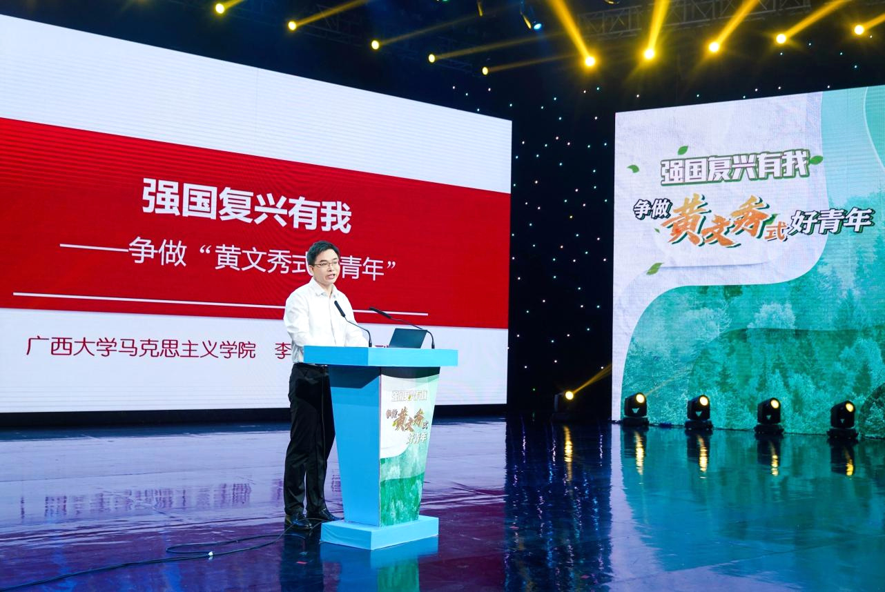 6月30日下午,“強國復興有我——爭做‘黃文秀式好青年’”2023年思政公開課高校專場在廣西南寧舉行,廣西大學200余名師生參加?;顒佑蓮V西壯族自治區黨委宣傳部主辦,采用“雙師授課+情景演繹”的模式進行授課,通過故事串講、情景演繹、思政授課等環節,回顧黃文秀感人故事,引領廣大青年樹立堅定理想信念、厚植家國情懷、加強品德修養、培養奮斗精神。