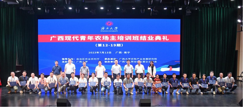 近日,廣西現代青年農場主培訓班(12-19期)結業典禮在廣西大學舉行,廣西大學、自治區農業農村廳、崇左市科技局、廣西大學農牧產業發展研究院以及廣西個體勞動者私營企業協會、廣西現代青年農場主聯合會相關負責人出席典禮,第12-19期廣西現代青年農場主學員共316人到現場參加典禮并獲取證書。