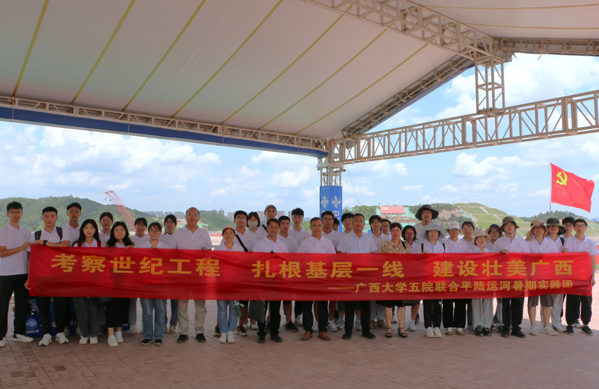 7月11日-14日,廣西大學平陸運河暑期實踐團赴平陸運河沿線,開展以“考察世紀工程,扎根基層一線,建設壯美廣西”為主題的暑期“三下鄉”社會實踐調研活動,從平陸運河的起點——南寧橫縣平塘江口(1標段)行至欽州平陸運河入海口(15標段),以全面了解平陸運河世紀工程的歷史意義、建設情況、生態保護計劃,及西部陸海新通道建設對沿線發展的重要意義。
