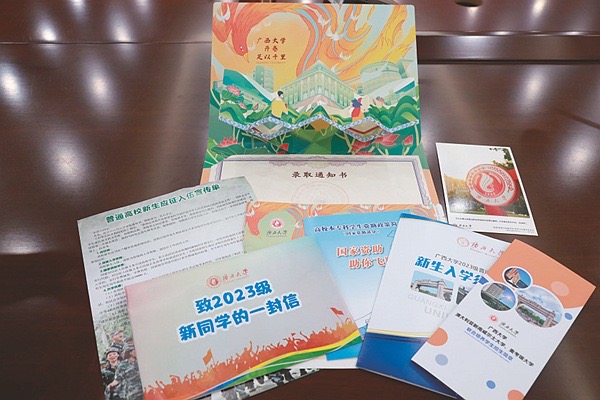 廣西大學(xué)2023年第一批本科新生錄取通知書封裝。記者李洋攝