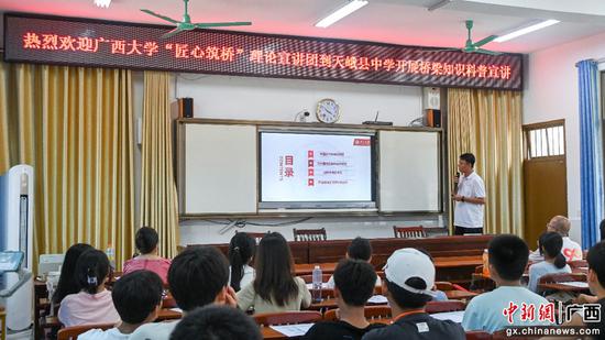近日,廣西大學“匠心筑橋”橋梁調研及理論宣講實踐團沿著鄭皆連院士的足跡,到廣西河池市天峨縣進行調研及宣講活動,并走進天峨縣中學的課堂,開展橋梁科普宣講。