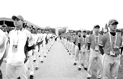 第一屆學青會棒球比賽開賽儀式在桂林旅游學院舉行。 資料圖片