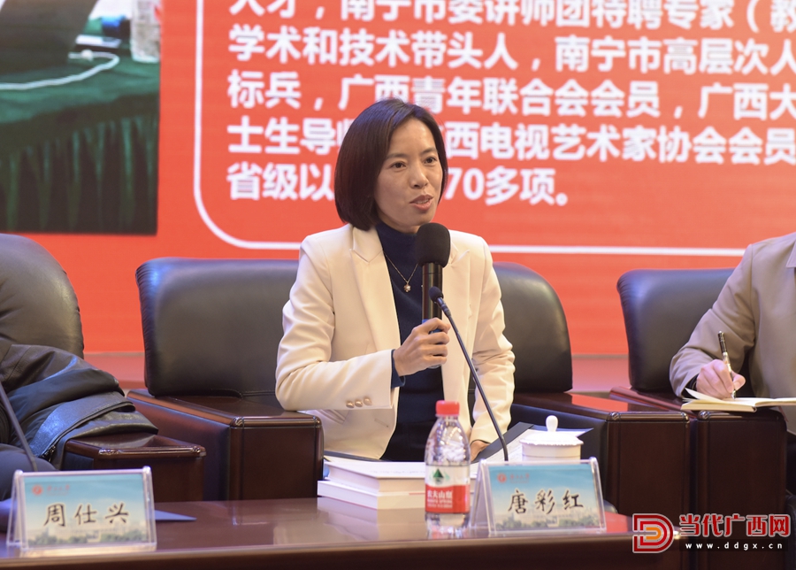 南寧廣播電視臺融媒體中心主任唐彩紅在發言中表示,要做到“學對一個人,團結一群人,感恩所有人”。通訊員 唐馨怡 攝