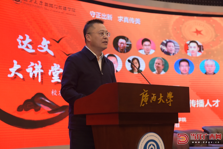 “達文大講堂”是為紀念廣西大學新聞系首任主任虞達文教授而設立,主要邀請學界、業界知名專家學者開展學術講座、人才培養交流,至今已舉辦22 期。