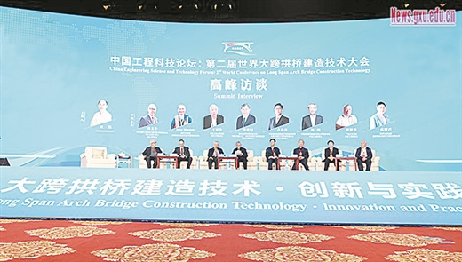 2023年3月,廣西大學(xué)舉辦“中國工程科技論壇:第二屆世界大跨拱橋建造技術(shù)大會”高峰訪談。廣西大學(xué)供圖