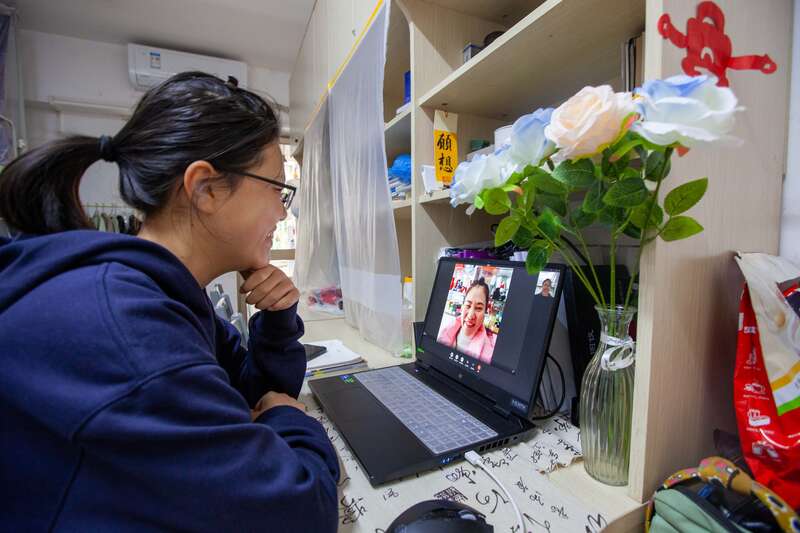 2月8日,廣西南寧,19歲的雍顏如和媽媽視頻通話。她是廣西大學電氣工程學院電氣工程及自動化專業大一學生。由于今年有軍訓,剩余假期不長,而且從廣西到寧夏有2000公里,她決定不回家了。她稱自己很獨立,“一點也不想家”,但她每天都會抽出時間和媽媽打視頻電話。江暢/攝