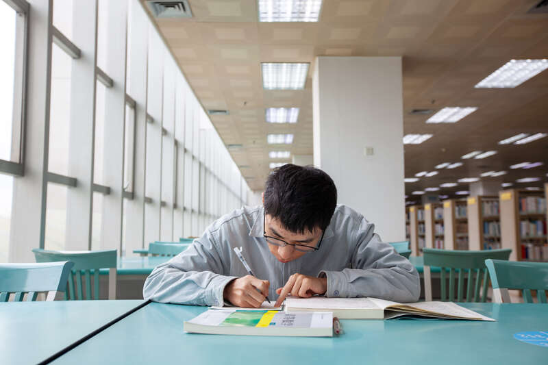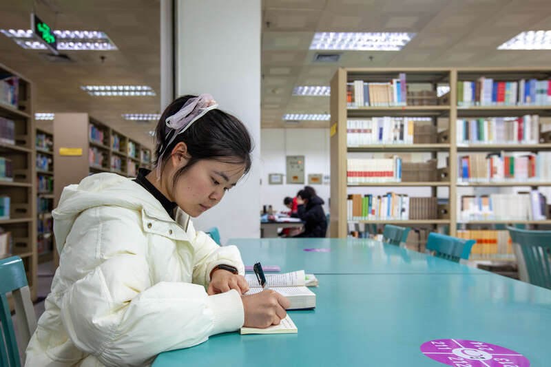 2月8日,廣西南寧,20歲的張成祥在圖書館學習。他是廣西大學電氣工程及其自動化專業大一學生,青海西寧人。寒假期間他參加了一個英語培訓班,以此填補自己的短板,所以沒有回家過年。江暢/攝