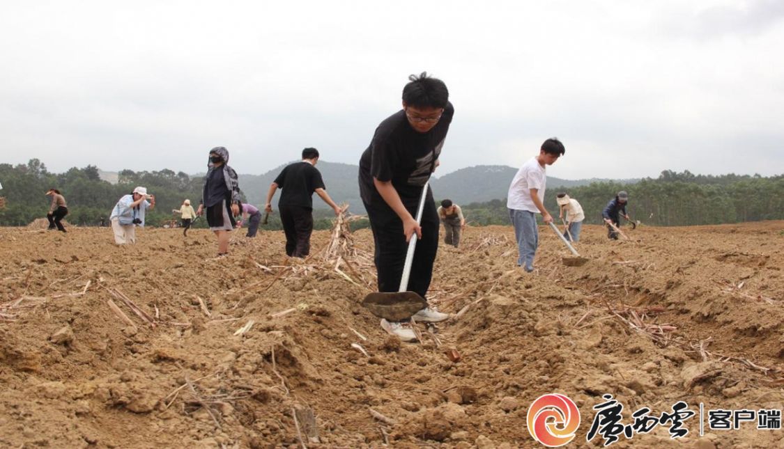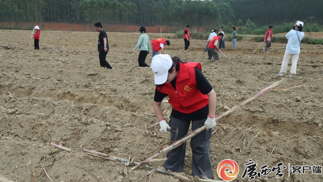 3月23日,廣西大學工商管理學院的師生們來到南寧市武鳴區羅波鎮暮定村,與村民一道搶抓春耕時節,播種甘蔗,進行甘蔗種植產業調研,開展了一場生動的勞動教育實踐活動。