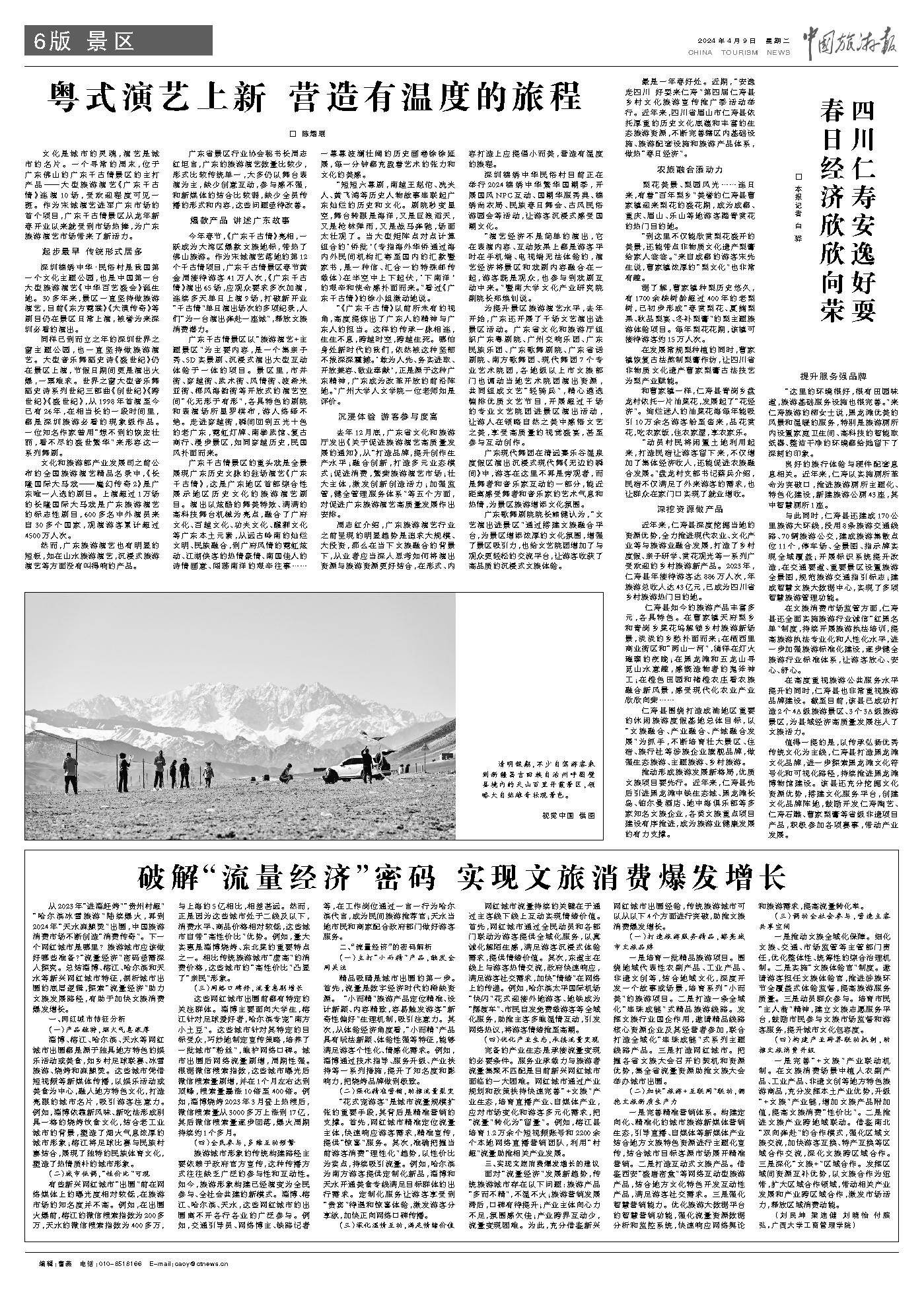 一是完善“+文旅”產業聯動機制。在文旅消費場景中植入農副產品、工業產品、非遺文創等地方特色旅游商品,充分發揮本土產業優勢,升級“+文旅”產業鏈,增加文旅產品附加值,提高文旅消費“性價比”。二是推進文旅產業跨地域聯動。借鑒南北“雙向奔赴”的合作模式,強化區域文旅交流,加快游客互換、特產互換等區域合作交流,深化文旅跨區域合作。三是深化“文旅+”區域合作。發揮區域間資源互補優勢,以文旅合作為紐帶,擴大區域合作領域,帶動相關產業發展和產業跨區域合作,激發市場活力,釋放區域消費動能。