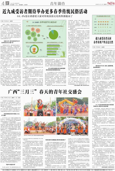 韋瑋俊覺得“三月三”是最具代表性的春天節(jié)日之一,到了這天他會(huì)踏青游玩,參加少數(shù)民族的傳統(tǒng)娛樂活動(dòng),跟同學(xué)一起走走逛逛,感受春和日麗和一切美好的景物。