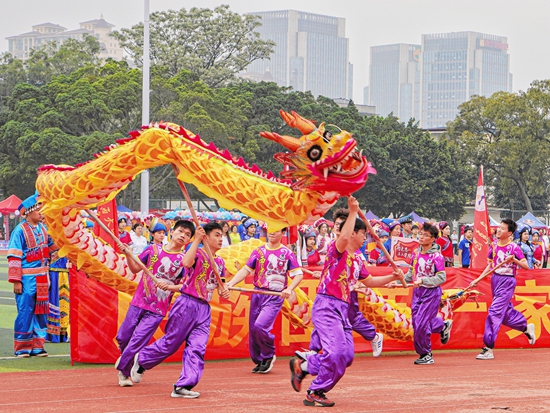 “嗨嘹嘹啰,嗨幸福嘹嘹啰……”唱起記憶中的壯族山歌,19歲廣西女孩莫夏琳開心地笑了。不久前,在廣西大學(xué)第十屆“三月三”民族文化體驗(yàn)展示活動(dòng)現(xiàn)場(chǎng),不少同學(xué)身著民族服飾,手拉手載歌載舞,臉上洋溢著笑容。