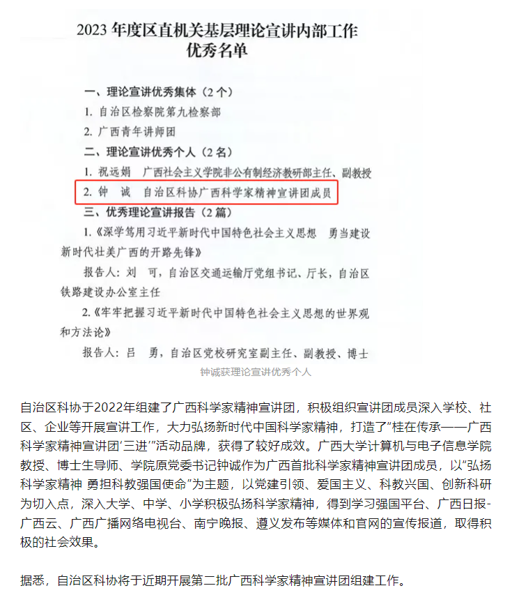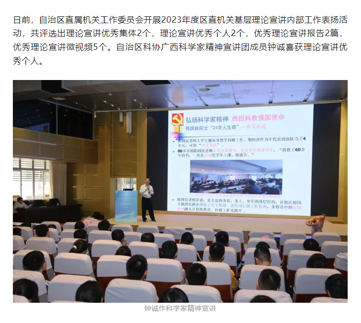 自治區(qū)科協(xié)廣西科學(xué)家精神宣講團(tuán)成員獲表揚(yáng)