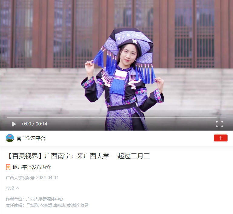 作者:廣西大學新媒體中心     編輯:賈琦艷     來源:學習強國   發(fā)表于: 2024-04-17 09:25  點擊:
