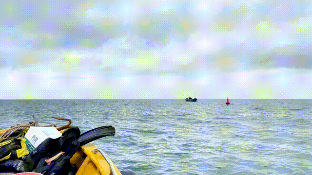 云層很低,海面浪也不小。我們一行人坐著小艇,珊瑚礁保護區的浮標逐漸向我們靠攏。