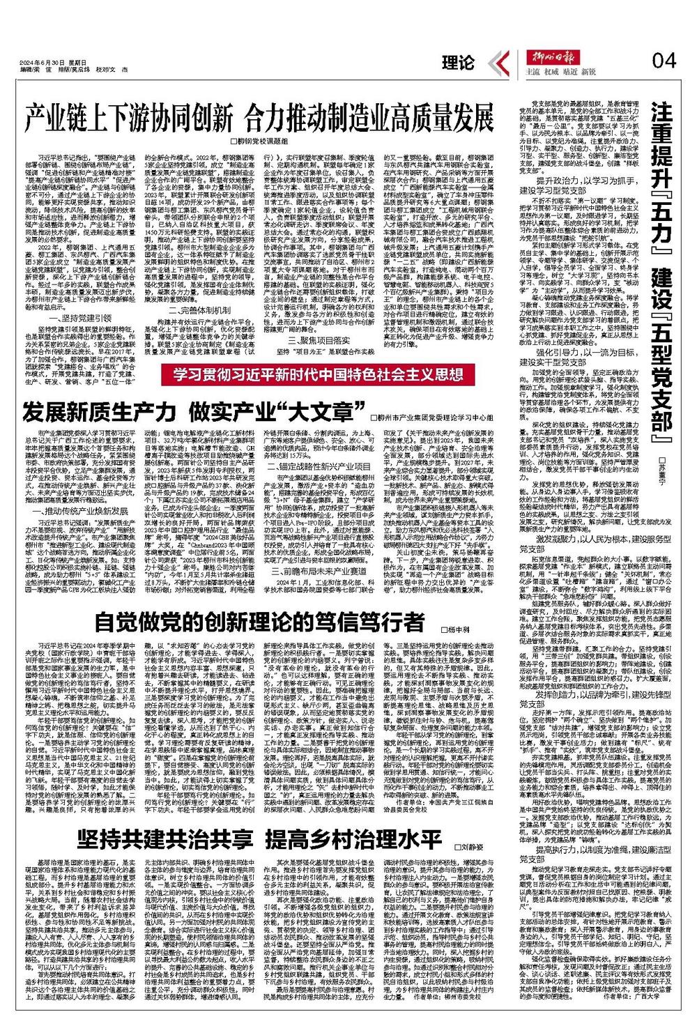 發揮黨的思想優勢,釋放強勁發展動能。從身邊人身邊事入手,學習借鑒吸收有效的工作經驗和方法,將基層黨組織的鮮活經驗凝結成時代精華,努力產出具有基層特色的實踐成果,以思想之變、方法之變引領發展之變,研究新情況,解決新問題,讓黨支部成為發展新質生產力的重要陣地。