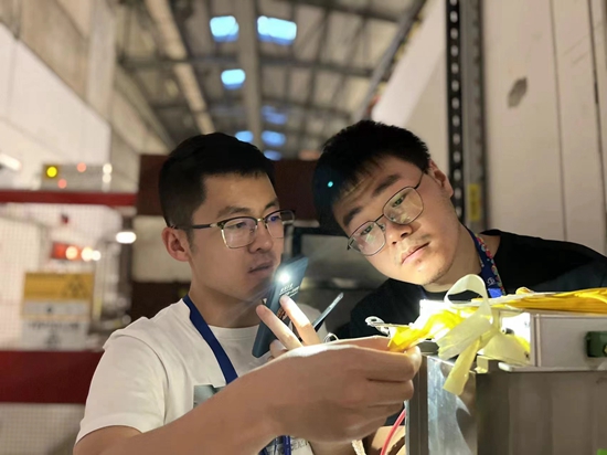 團(tuán)隊(duì)成員在歐洲核子研究中心進(jìn)行穿越輻射探測(cè)器束流實(shí)驗(yàn)現(xiàn)場(chǎng)調(diào)試。謝文錦/攝