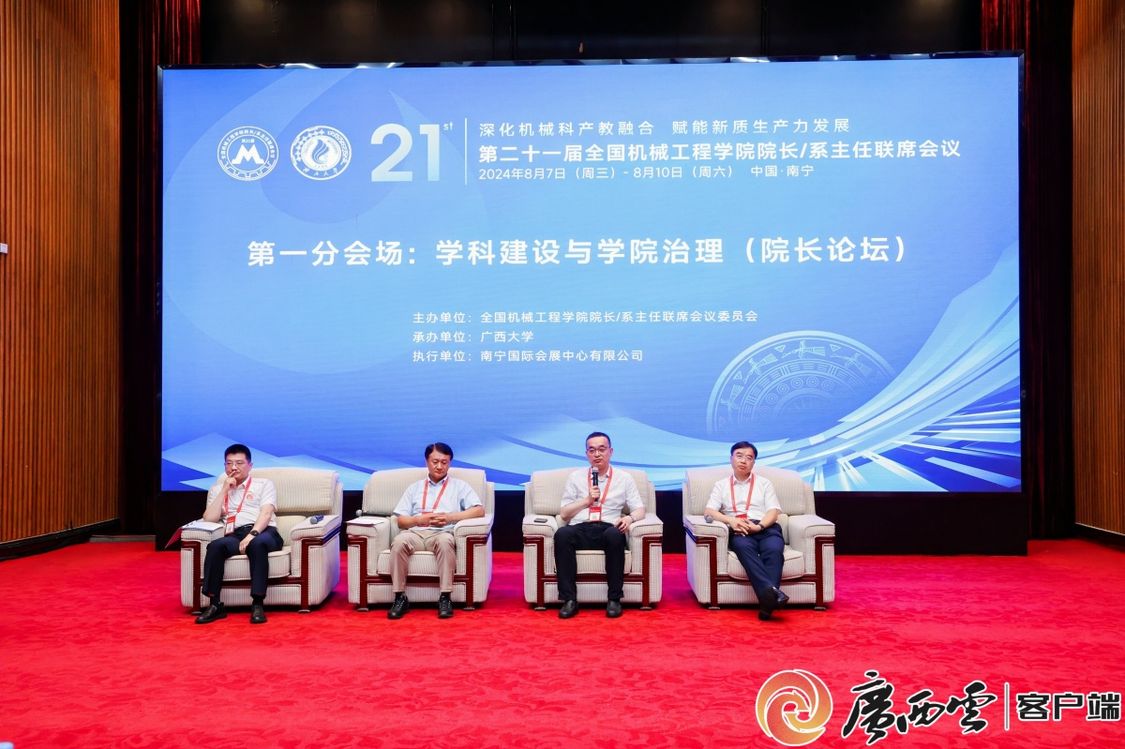 8月8日,由全國機械工程學院院長/系主任聯席會議委員會主辦、廣西大學承辦的第二十一屆全國機械工程學院院長/系主任聯席會議在南寧舉行。中國工程院院士郭東明、楊華勇、王樹新、馬玉山、陳學東出席會議。