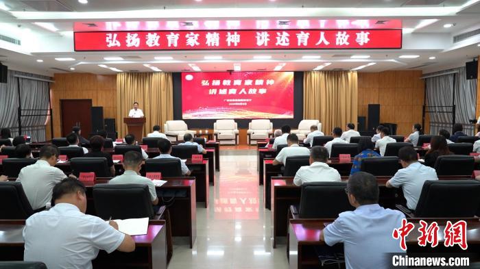 當(dāng)天,為慶祝第40個(gè)教師節(jié),弘揚(yáng)教育家精神,加大優(yōu)秀教師典型宣傳,講好廣西教育故事,廣西壯族自治區(qū)教育廳在南寧舉行“弘揚(yáng)教育家精神,講述育人故事”活動(dòng)。