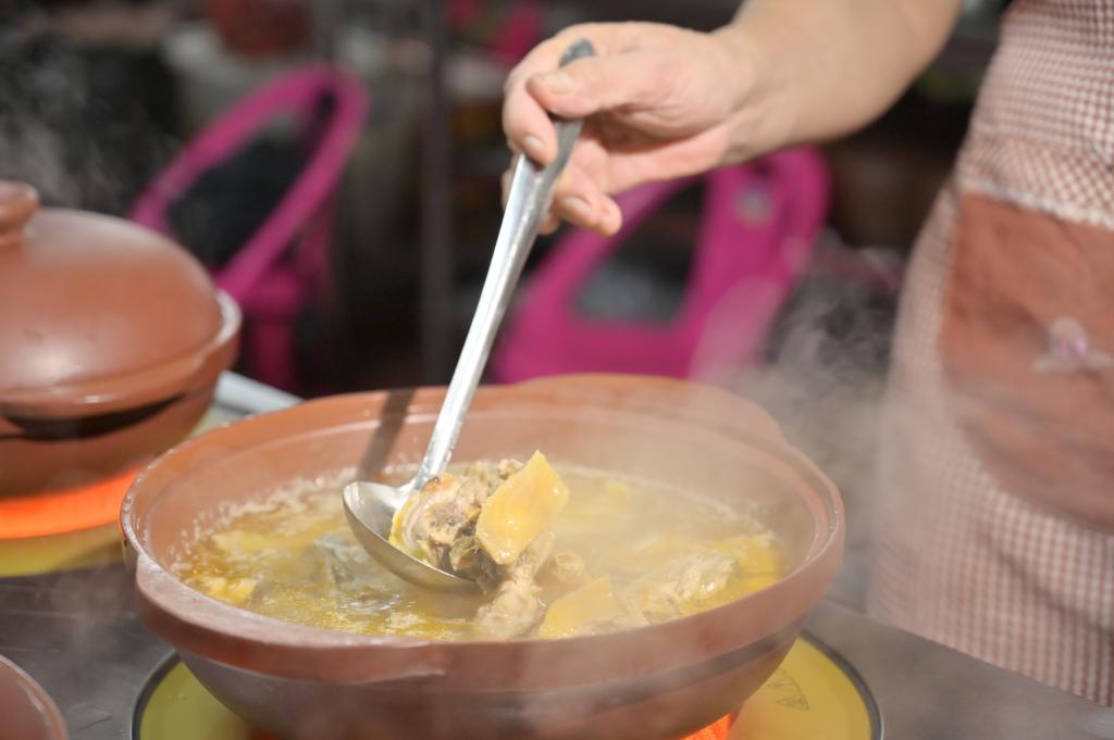 “很香”“湯汁鮮甜”“雞肉鮮嫩”……食客杜華芳看著新鮮出爐的坭興陶活水雞煲忍不住推薦?!斑@里的雞湯雖做法簡單,但就是這原汁原味,讓人回味無窮。”