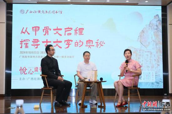 近日,由廣西壯族自治區圖書館主辦的“悅心·讀書會:從甲骨文啟程,探尋古文字的奧秘”閱讀分享會,在廣西圖書館多功能廳舉行。活動以線上、線下相結合的方式開展,超1500人次讀者一同走進神秘的甲骨文世界,探尋其背后深厚的文化底蘊。