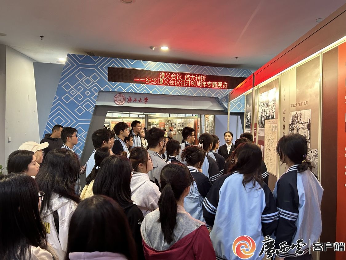 “這是我第一次走出教室跟大學(xué)生哥哥姐姐們一起參加團(tuán)日活動(dòng),感覺很新奇。雖然歷史課本里也學(xué)過遵義會(huì)議的相關(guān)內(nèi)容,但參觀‘行進(jìn)中的紀(jì)念館’讓我更深刻地理解了遵義會(huì)議的精神內(nèi)涵。”南寧市第三中學(xué)團(tuán)員羅京林說。聽講解、看照片、讀史料、學(xué)知識(shí),團(tuán)員青年們跟著講解員跨越時(shí)空,沉浸在遵義會(huì)議的偉大歷史時(shí)刻。