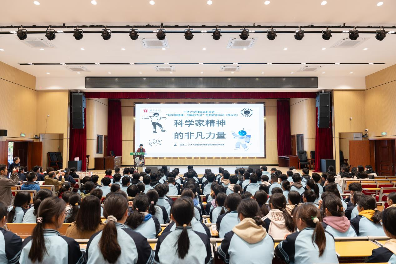 “當我們講述科學家的奮斗故事、介紹科技成果時,同學們的專注與熱情讓我看到了我們努力的意義。”宣講團成員、廣西大學2023級碩士研究生李嬈慧說,這不僅是一次傳遞科學家精神的過程,更是推動鄉村振興的具體實踐。“通過科技和文化的融合,我們希望能夠激發同學們對科學的興趣,引導他們將個人成長與鄉村發展相結合,為鄉村振興貢獻智慧和力量。”