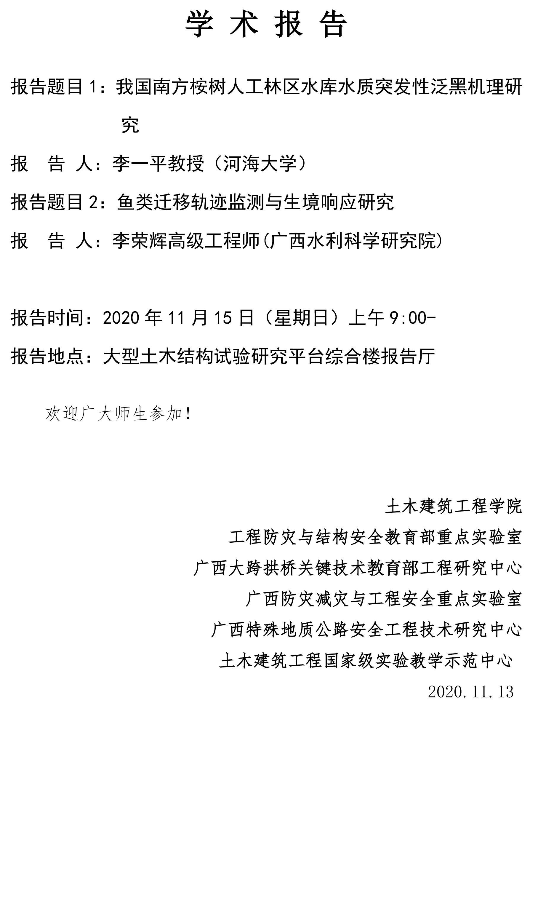 主講人 李一平 李榮輝 地址 大型土木結構試驗研究平臺綜合樓報告廳