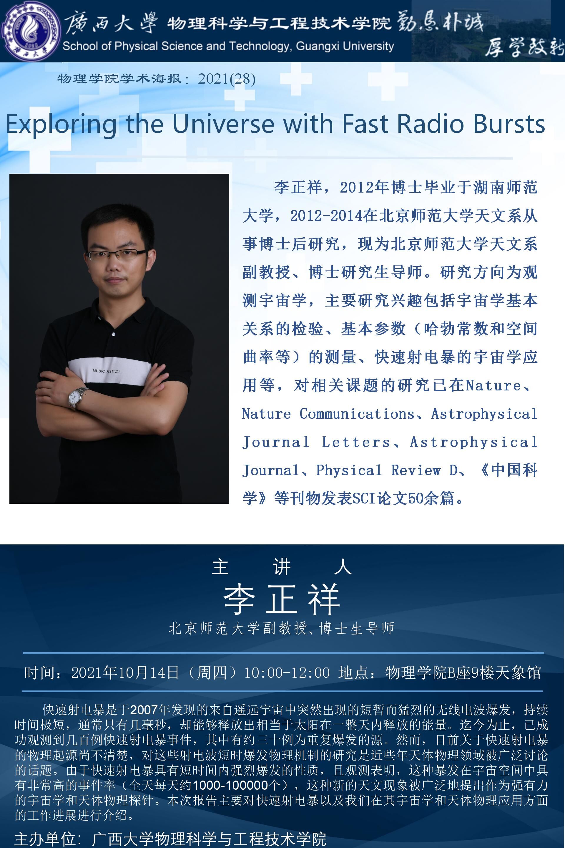 物理科學與工程技術學院學術報告:Exploring the Universe with Fast Radio Bursts