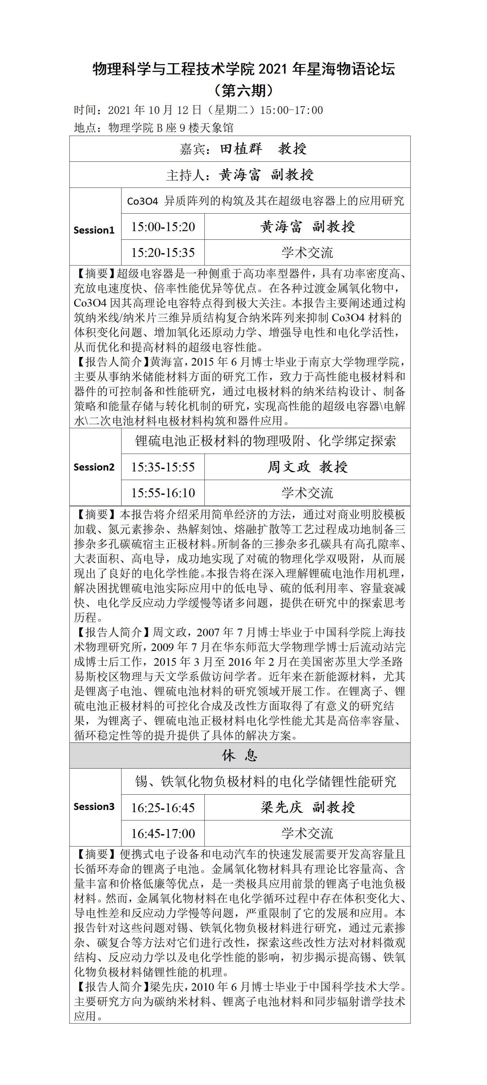 物理科學與工程技術學院2021年星海物語論壇(第六期)