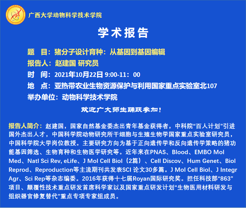 主講人 趙建國 研究員 地址 亞熱帶農(nóng)業(yè)生物資源保護(hù)與利用國家重點(diǎn)實(shí)驗(yàn)室北107