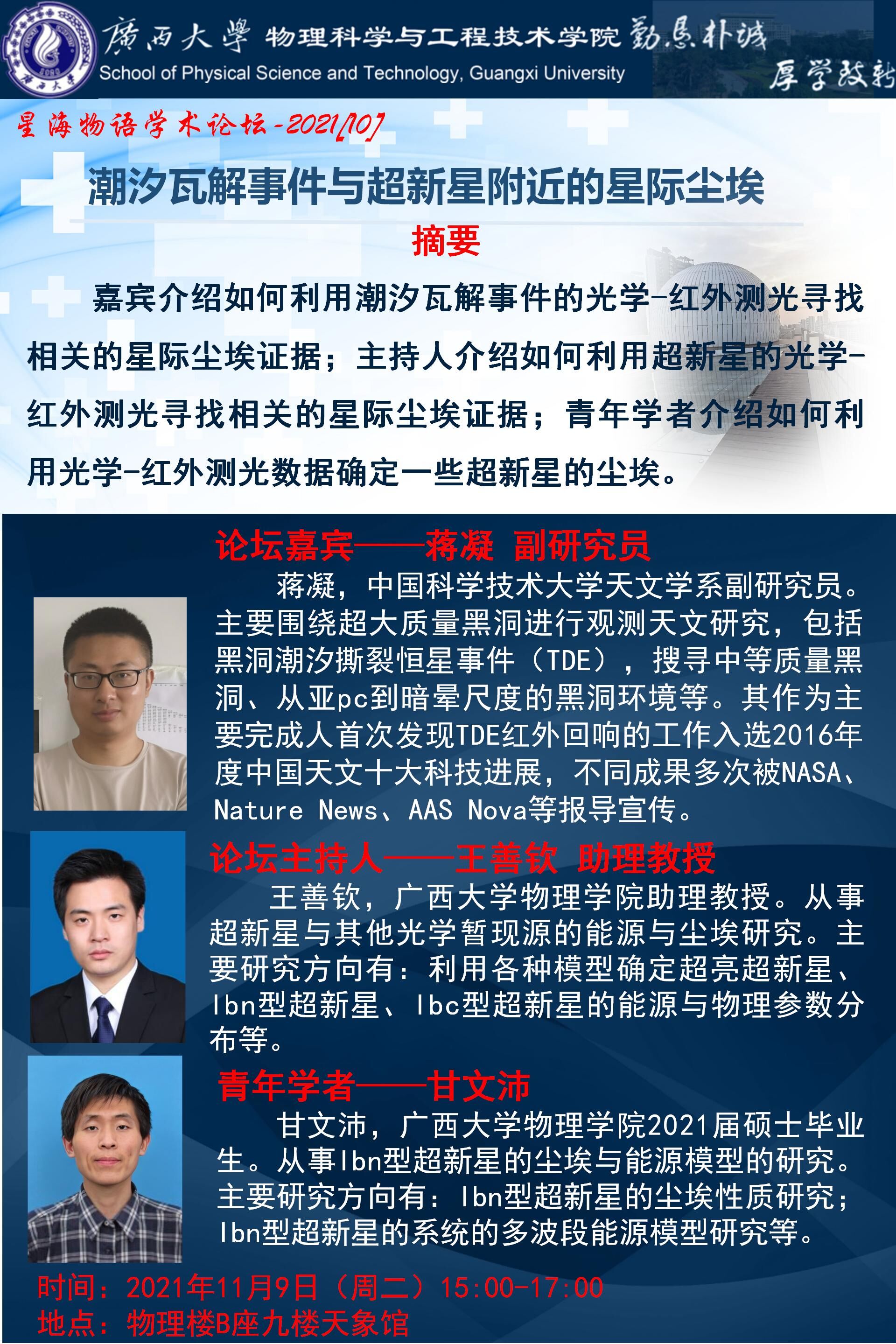 物理學院星海物語學術論壇(第十期):潮汐瓦解事件與超新星附近的星際塵埃