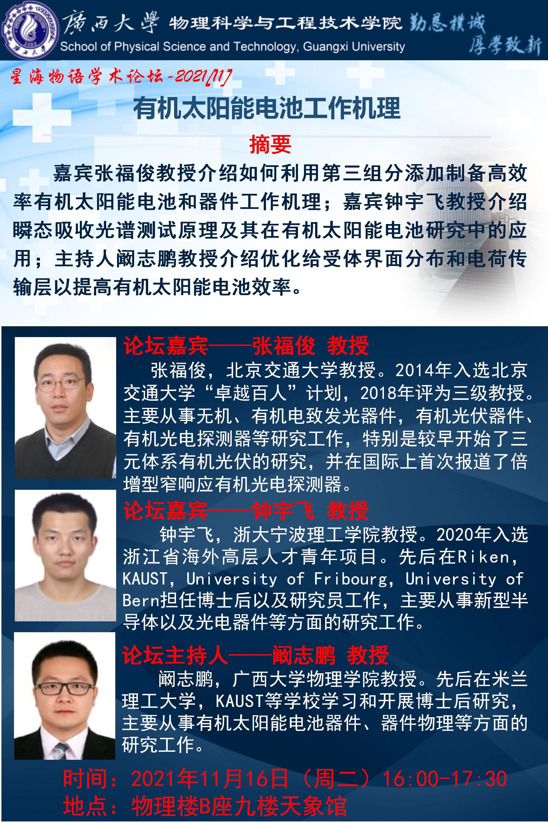 物理學院星海物語學術論壇(第十一期):有機太陽能電池工作機理