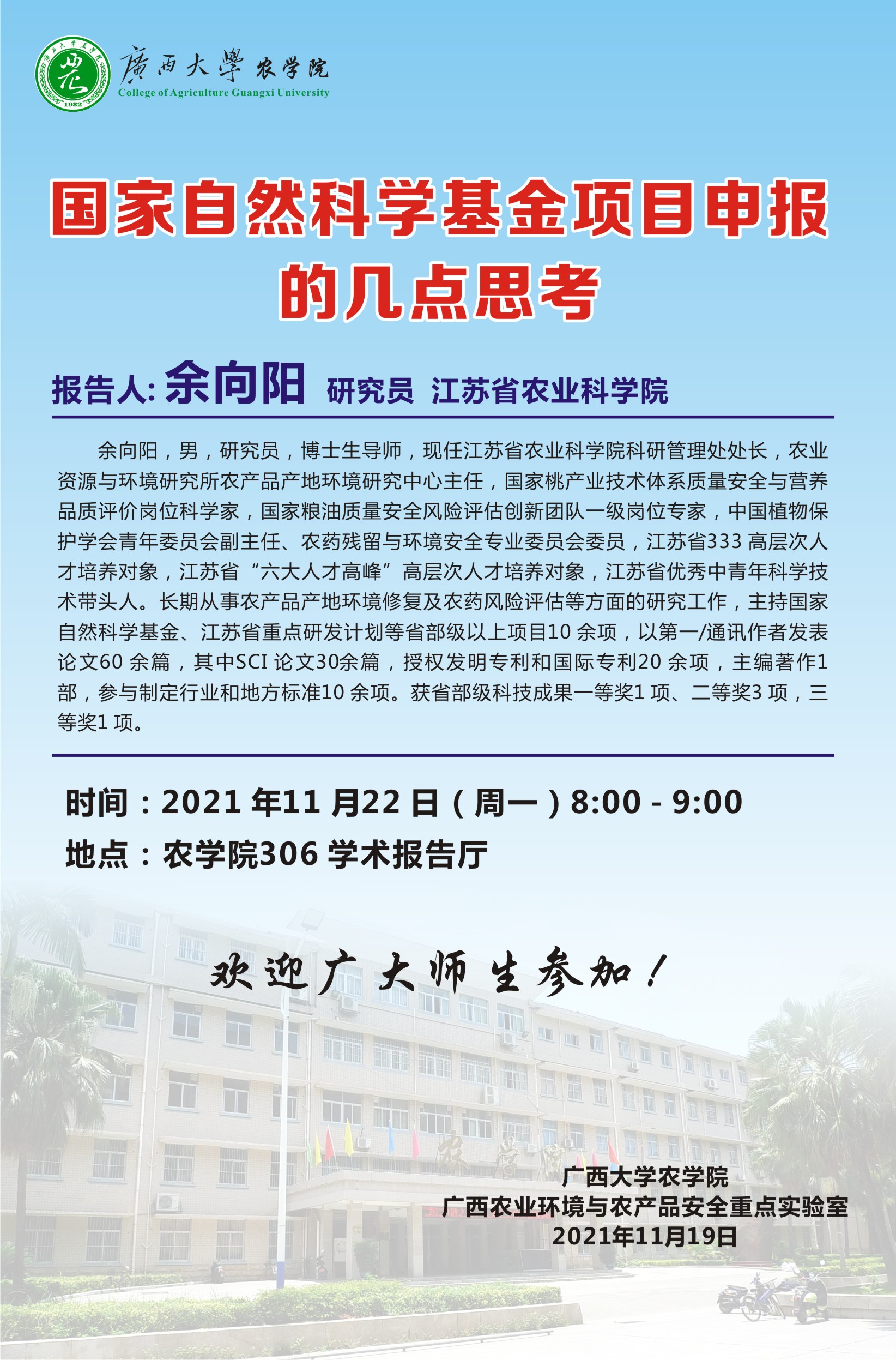 農學院學術報告:國家自然科學基金項目申報的幾點思考