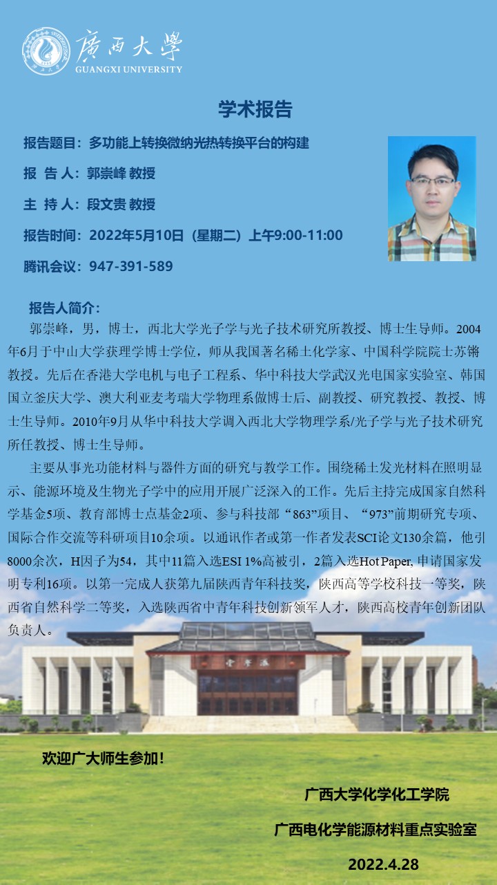 主講人 郭崇峰 教授 地址 騰訊會議:947-391-589