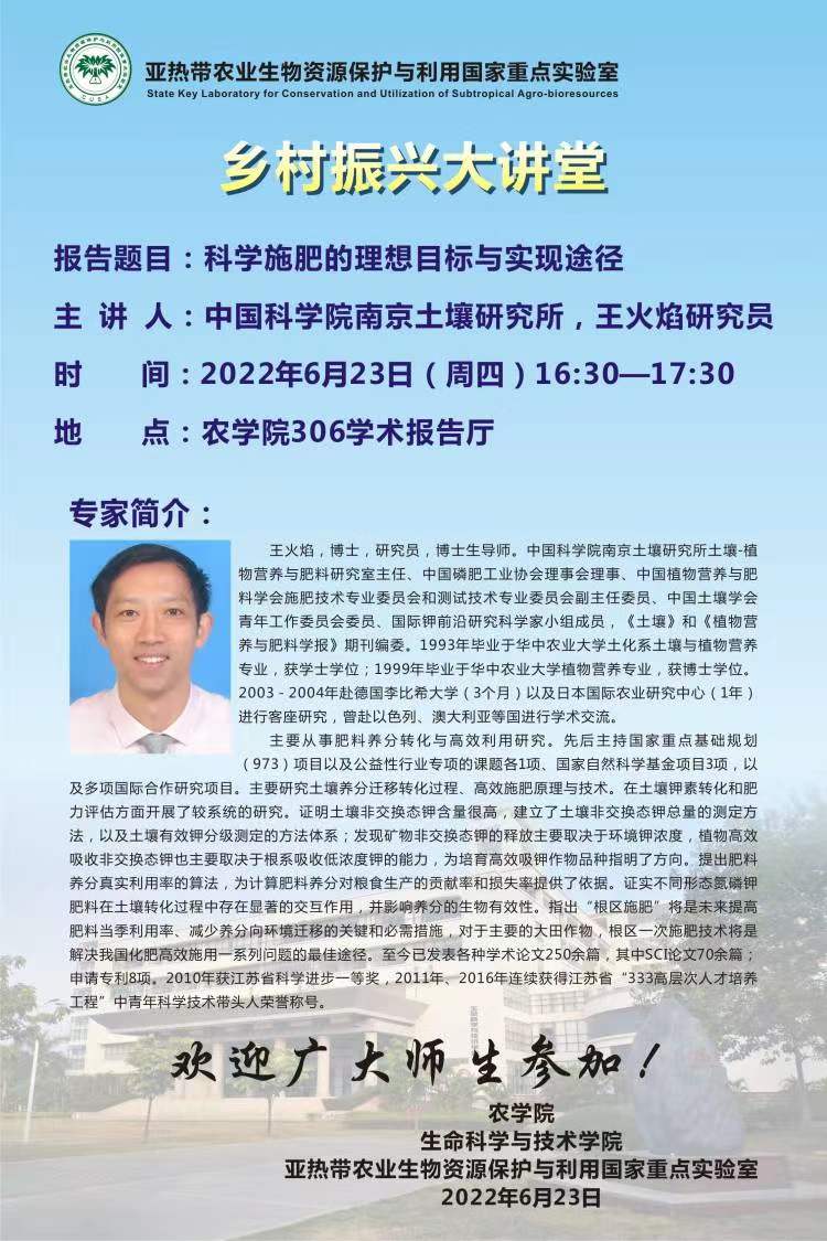 主講人 王火焰 研究員 地址 農學院306學術報告廳