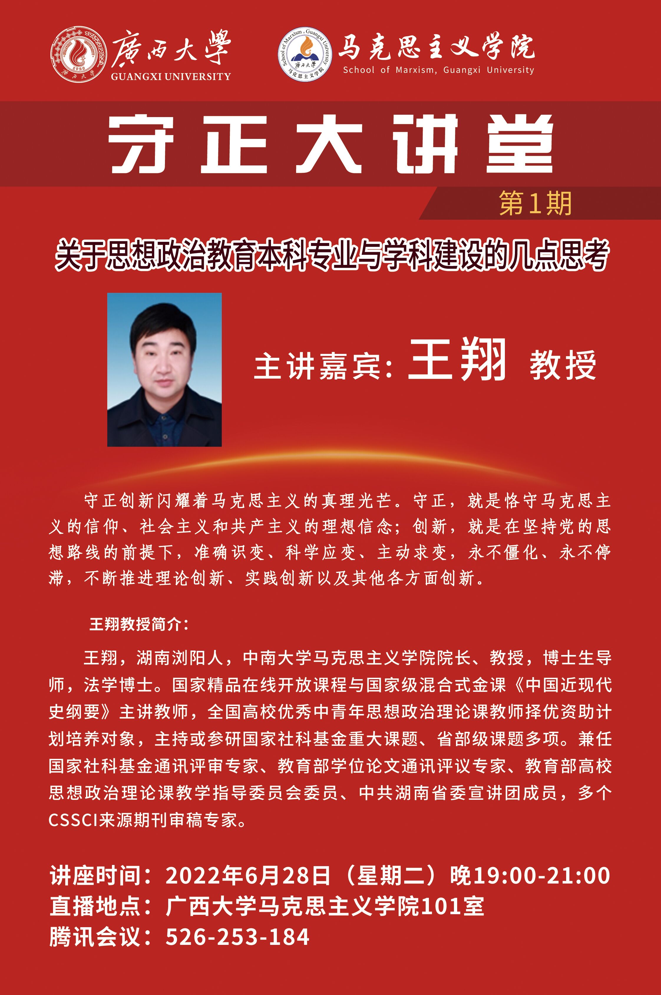 守正大講堂第一期:關于思想政治教育本科專業與學科建設的幾點思考(線上)