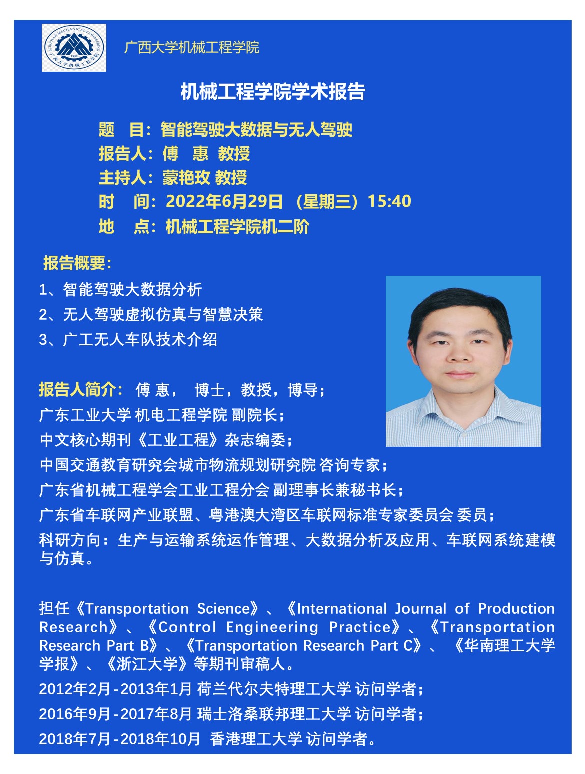 機械工程學院學術報告:智能駕駛大數據與無人駕駛