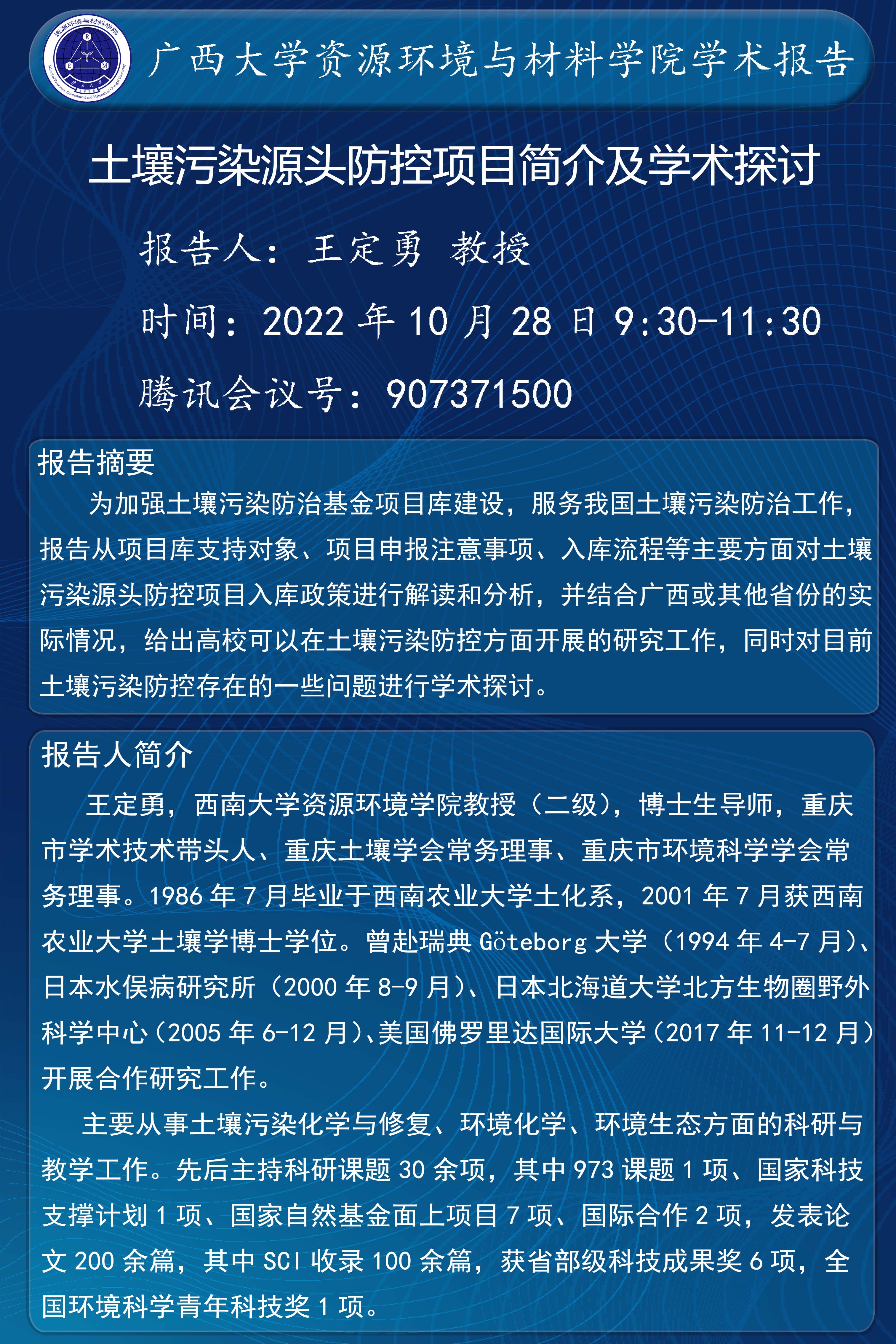 主講人 王定勇 教授 地址 騰訊會議,會議號:907371500