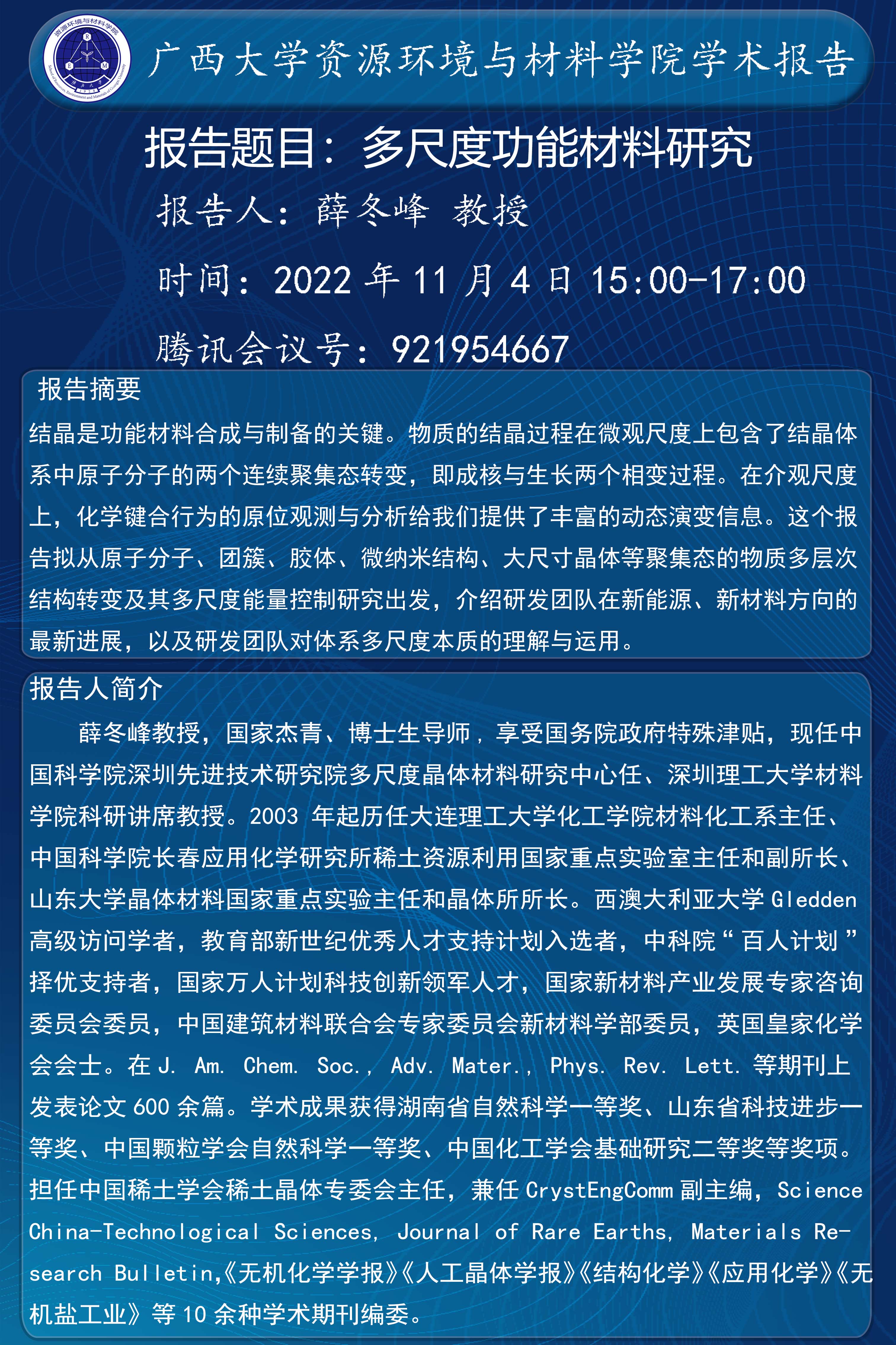 資源環(huán)境與材料學(xué)院學(xué)術(shù)報(bào)告:多尺度功能材料研究