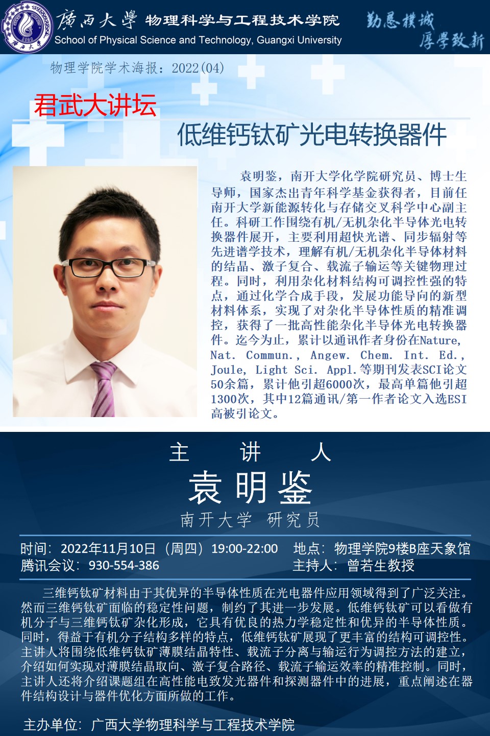 物理科學(xué)與工程技術(shù)學(xué)院君武大講壇:低維鈣鈦礦光電轉(zhuǎn)換器件