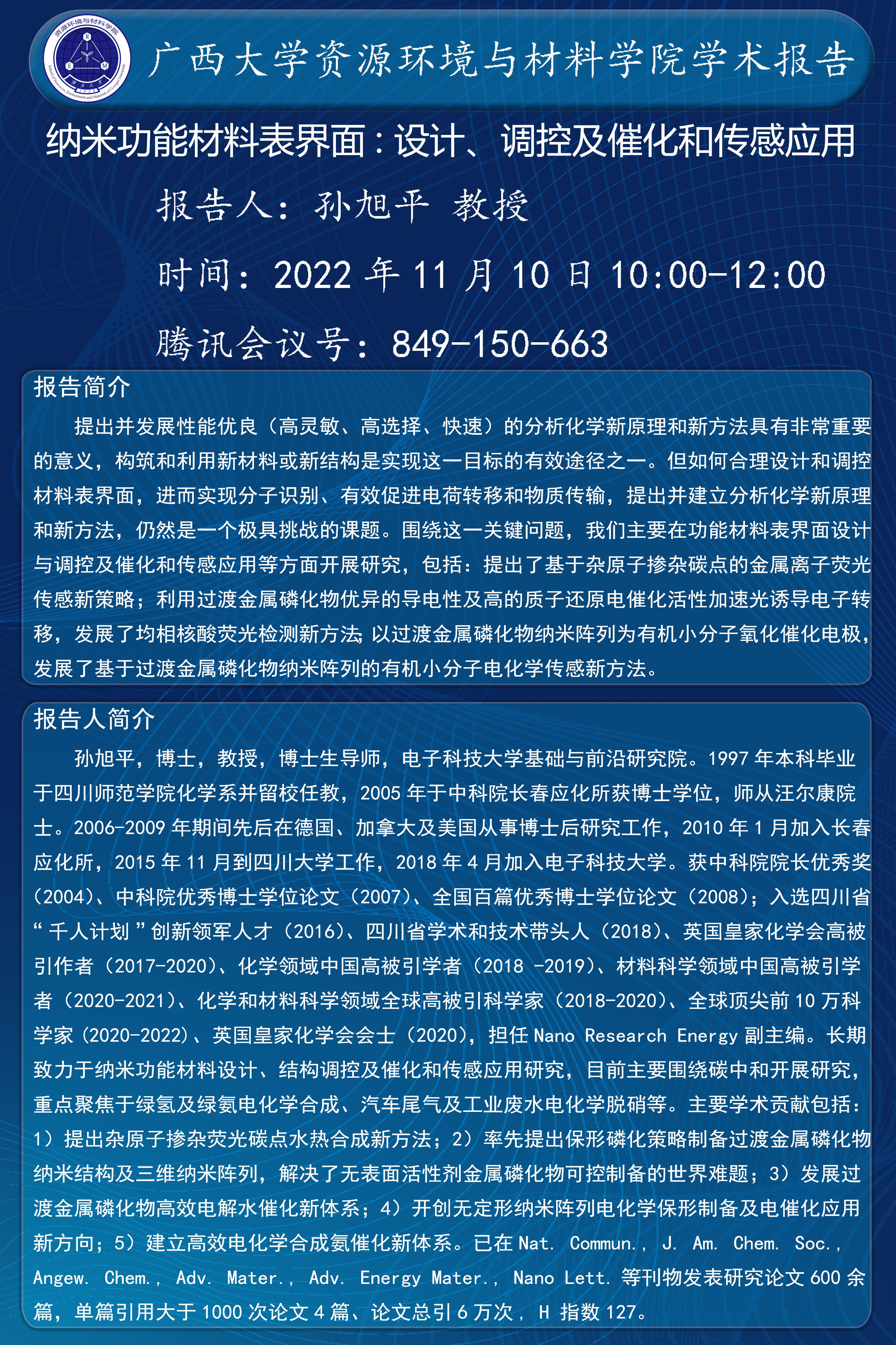 資源環境與材料學院學術報告納米功能材料表界面: 設計、調控及催化和傳感應用