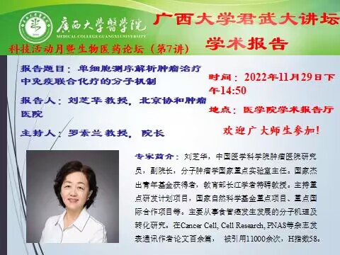 君武大講壇醫(yī)學(xué)院學(xué)術(shù)報(bào)告 單細(xì)胞測(cè)序解析腫瘤治療中免疫聯(lián)合化療的分子機(jī)制