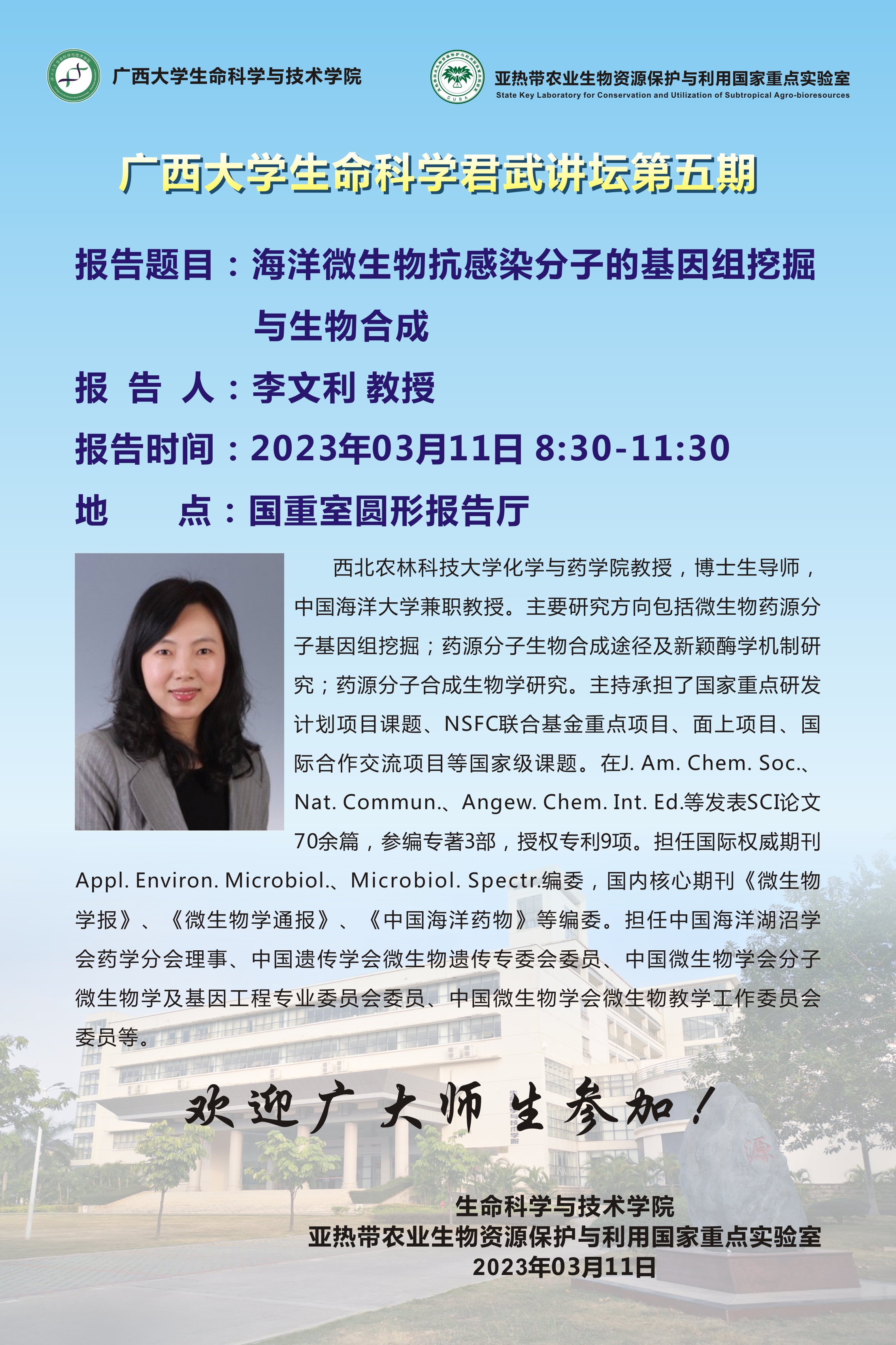 上一條:生命科學君武講壇(第六期):革蘭氏陰性細菌中蛋白VI型分泌系統的合成與作用機制